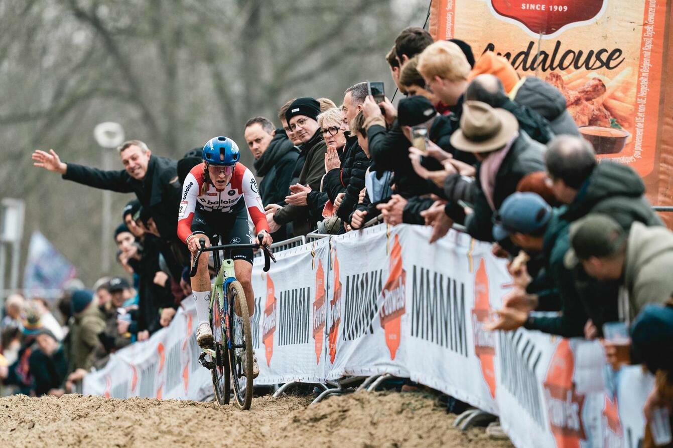 À peine devenue la nouvelle leader du classement général, Brand (Baloise Glowi Lions) tenait déjà à honorer son nouveau maillot. Dès la première section sablonneuse, elle a provoqué une première sélection : seules Fouquenet (Arkea – B&B Hotels Women) et Van Alphen (Seven Racing) ont pu suivre. Dans la section de sable suivante, Fouquenet a dû lâcher prise à son tour. Van Alphen a tout tenté pour rester dans la roue d’une Brand déchaînée.